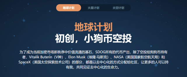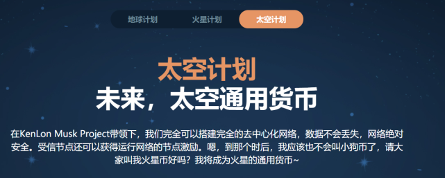 另外,小狗币还让我觉得有意思的地方是它官网上的三个计划:地球计划&火星计划&太空计划。乍一看,有种要称霸宇宙的意思啊。